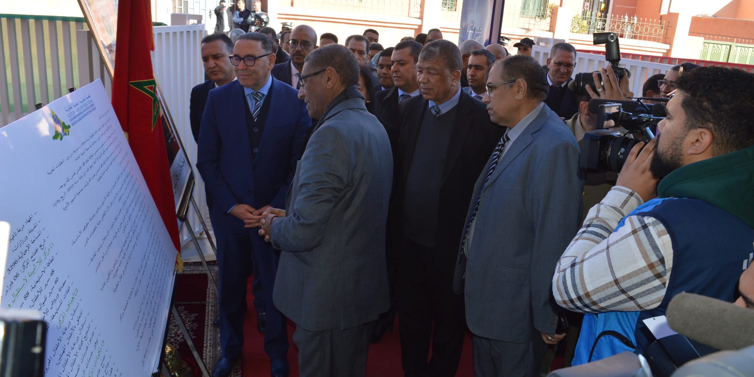 Inauguration du Centre Lalla Amina à Ouarzazate pour la prise en charge des enfants en situation difficile qui a été réalisé par la Ligue Marocaine pour la Protection de l’Enfance avec l’appui de l’INDH et la collaboration du Ministère de la Jeunesse, de la Culture et de la Communication. D’une capacité de 90 lits, ce centre assure aux bénéficiaires l’hébergement, ainsi que les soins et prestations médico-sociales et les actions éducatives et psychologiques.